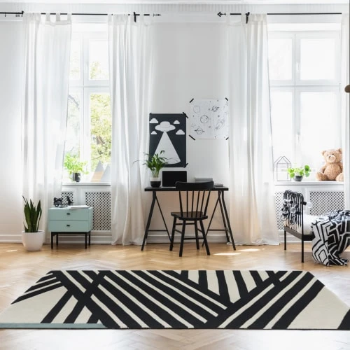 Tapis tissé main. Epaisseur 1 cm. 80% laine, 20% coton