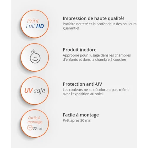 • Finition : Impression haute qualité sur papier peint intissé