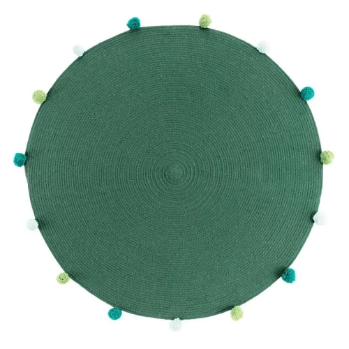 Caractéristiques du tapis rond pompons 90 cm Pompomparty vert :