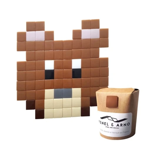 mosaique prête à poser, composée de carreaux de verre colorés et équipés d’un adhésif puissant professionnel.En suivant le plan de pose, vous installerez facilement, rapidement et proprement votre tête d’ourson dans la chambre des enfants….ou partout ailleurs où vous le souhaitez.La fresque posée a pour dimension : 23cm de large par 23 cm de haut.La fresque est livrée en boite kraft type “pasta box” comme présentée en photo. Prête à offrir ou à s’offrir pour apporter une touche “Nature et Fun” dans votre intérieur.Fenel & Arno est une marque française créée en 2008 qui imagine, dessine et fabrique en France des meubles, objets et décorations “Pop Chic”.
