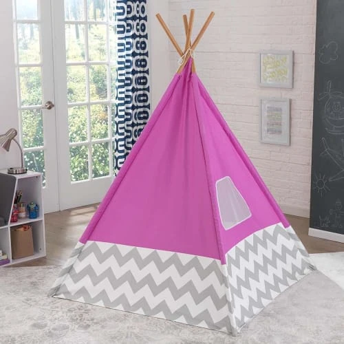 Aspect : Coloris : Rose Gris Blanc Matériau principal : Tissu – fibre de verre (toile)Matériaux secondaires : Bambou (cadre)Dimensions : Hauteur (en cm) : 162,00Longueur (en cm) : 121,90Profondeur (en cm) : 121,90Autres caractéristiques : Age recommandé : De 3 à 8 ans.Informations complémentaires : Fenêtre en filet pour permettre aux parents de voir dedans et aux enfants de voir dehors. Utilisation en Intérieur ou extérieur par beau temps.Livré en kit : OuiMontage : Instructions détaillées pour un assemblage étape par étape.Poids (en kg) : 4,40 Tipi enfant en toile et bambouColoris RoseHauteur 162cm