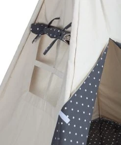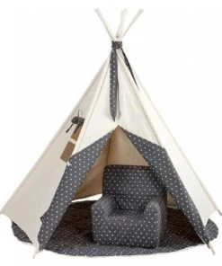 Ce joli tipi aux tons épurés s’adaptera à tous les styles de chambres et de déco. Pour filles ou garçon, il conviendra et amusera de longues heures les minis aventuriers ! Fabriqué en Europe en coton certifié Oeko-tex, ce tipi de haute qualité durera dans le temps. L’ensemble comprend : un tipi, un coussin et un tapis