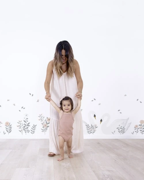 Créez une déco avec de jolie petites fleurs. Un style délicat et raffiné.Des couleurs douces et rabattues pour une déco parfaite pour le nid de bébé.
