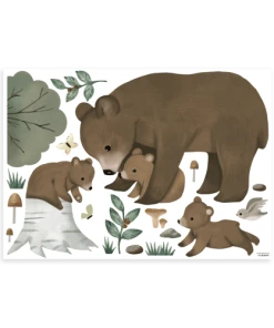 Lilipinso Stickers Muraux La Famille Ours En Vinyle Mat Multicolore