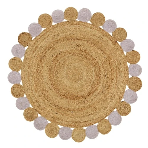 Ce tapis rond en jute et coton parme combine à merveille le naturel et l’original. Grâce à sa forme rappelant le soleil et l’alternance de couleur beige/parme, ce tapis rond égayera la chambre de votre enfant.