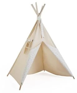 Le tipi : Les enfants adorent, nous aussi. Petit refuge ludique pour les enfants, il est le complice idéal pour se cacher et s’inventer des histoires en toute tranquillité. A offrir et pour se faire plaisir bien-sûr ! Car on le trouve trop stylé avec ses étoiles et ses couleurs neutres qui s’harmonisent parfaitement avec notre déco scandinave ! Pratique, le tipi se monte et se démonte en un tour de main. Caractéristiques : Tipi JOLAN Dimensions approximatives : hauteur 160 cm x longueur 140 cm x profondeur 130 cm Structure en bois de pin Composition du tissu : coton et polyester 2 fenêtres. Tapis de sol et jouets non inclus. Attention : Ne convient pas aux moins de 3 ans. Petites pièces, risque de suffocation.Article réservé à un usage domestique.À utiliser sous la surveillance d’un adulte.