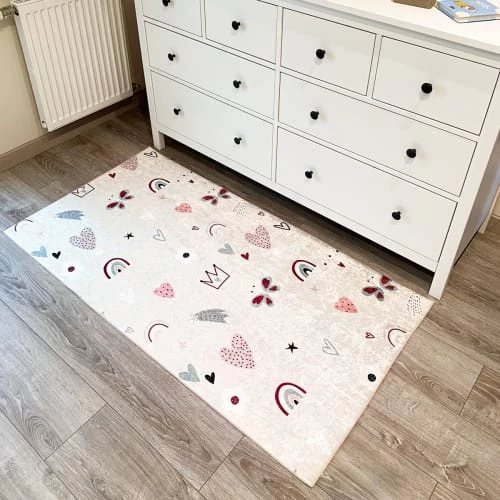 Ce tapis pour enfants aux motifs papillons dispose d’un support antidérapant. Son design coloré ne manquera pas de plaire à votre enfant ! Le design présente de nombreux motifs et couleurs différents, ce qui en fait un ajout attrayant à toute pièce.