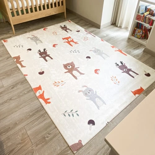 Nous proposons une large gamme de tapis d’animaux de la jungle, ce qui vous permet de choisir plus facilement un article en particulier. Ce tapis d’animaux est lavable en machine et possède une palette de couleurs chaudes. Il est parfait pour les chambres d’enfants, car il ne contient pas de substances nocives, ce tapis animaux est certifié OEKO-TEX. Le tapis animal pour chambres d’enfants est disponible en différentes tailles afin que vous choisissiez celui qui convient le mieux à vos besoins.