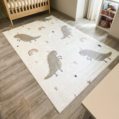 Ce tapis pour enfants dinosaures dispose d’un support antidérapant. Son design coloré ne manquera pas de plaire à votre enfant ! Le design coloré présente des grands dinosaures vert. Vous pouvez placer ce tapis dinosaure enfant n’importe où dans votre maison et il sera superbe ! Il est parfait pour les enfants de tous âges et constitue une excellente idée de cadeau pour les anniversaires ou les fêtes.