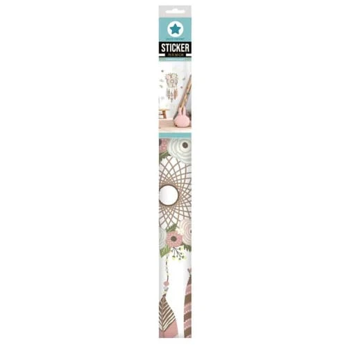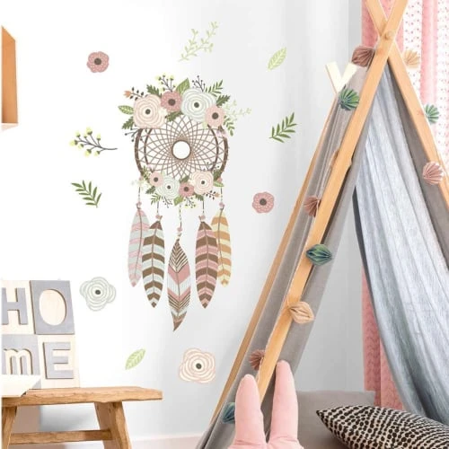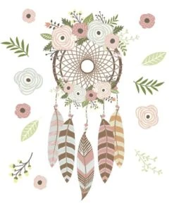 Décoration adhésive murale ATTRAPE REVES FLEURS Dim de la planche : 50 x 70 cm Dim de la composition mise en place : Hauteur 97 cm – Largeur 61cm Nettoyez et séchez la surface sur laquelle vous souhaitez coller votre sticker. Cette surface doit être impérativement Parfaitement lisse, lessivée et séchée Les stickers muraux ne sont pas adaptés aux papiers peints, aux surfaces rugueuses, crépis, peintures texturées même légèrement…