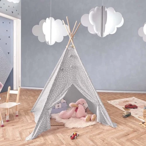 Aspect : Coloris : taupe et blanc Taupe Blanc Matériau principal : PolyesterDimensions : Hauteur (en cm) : 160Longueur (en cm) : 120Profondeur (en cm) : 120Autres caractéristiques : Informations complémentaires : Notice inclusePoids (en kg) : 1,60 Tipi enfant en tissu 160 cm Little house