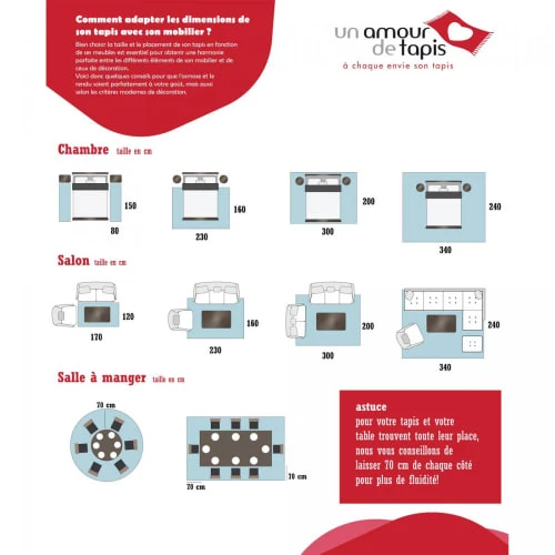 Tapis enfant ZOO TOO de marque Unamourdetapis A la recherche d’un Tapis ? Besoin d’une idée déco pour habiller votre sol ? Envie de réchauffer votre intérieur ? Le Tapis enfant ZOO TOO Gris 80×150 est idéal pour toute la décoration de la maison. Un tapis exclusif UnAmourDeTapis Aux motifs Enfant Adolescent, ce Tapis enfant a été sélectionné pour son visuel , ses couleurs, mais aussi pour sa qualité. Il habillera à merveille tous types d’intérieur qu’ils soient modernes ou classiques. L’histoire d’Un Amour de Tapis, c’est avant tout l’histoire d’un homme : Olivier Sahinkaya. Son amour pour les tapis, il le tient de son père, grossiste en tapis d’Orient qui lui a enseigné les ficelles du métier dès son plus jeune âge. Dès 2000, il se lance dans la vente de tapis en ligne et crée la marque « Un Amour De Tapis ». Sa boutique en ligne a pour objectif d’offrir au plus grand nombre des tapis du monde entier, de différentes matières, styles, types de fabrications et pour tous les budgets : A chaque envie son tapis Soucieux des enjeux sociaux et environnementaux, Un Amour De Tapis privilégie les tapis labellisés GOTS (Global Organic Textile Standard) , OEKO-TEX et AZO FREE et est membre actif de CARE & FAIR, association qui lutte contre le travail des enfants. Caractéristiques : tapis Poils ras 80×150 Idéal pour PIECES : Chambretapis Rectangulaire tapis Gris 65% Polypropylène, 35% Jute 2900 Grammes par m2 13 mm de hauteur Fait à la machine Fait en Turquie Qualité : Entretien tapis facile, aspirateur ou chiffon humide Certifications : Ce tapis est adapté au chauffage par le sol. Tapis certifié OEKO TEX