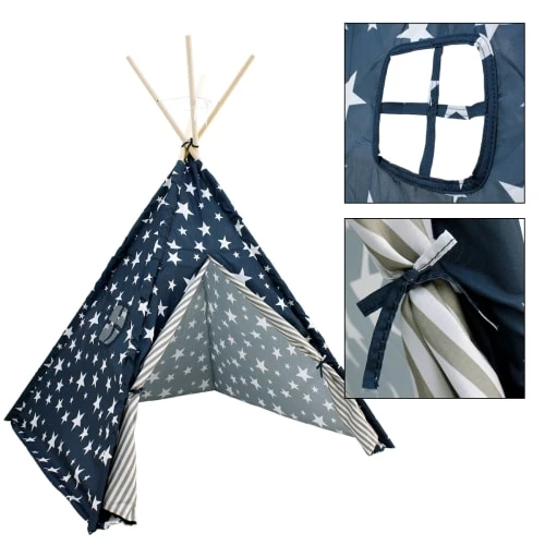 Tipi de jeu pour enfant à installer dans la chambre pour laisser leur imagination déborder! Ce tipi déco devient leur petit refuge où ils aiment venir lire, jouer, s’installer… Et pourquoi ne pas disposer des coussins déco à l’intérieur pour créer un espace cosy? Se range facilement dans son sac fourni.