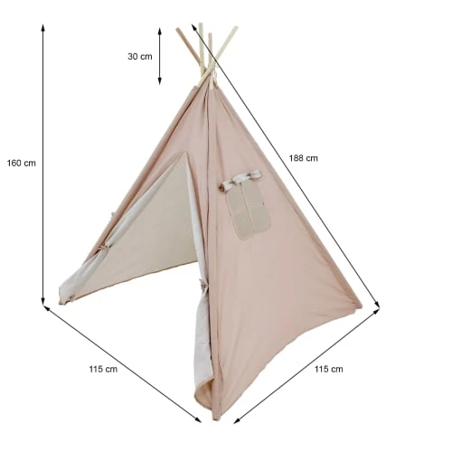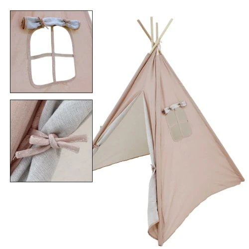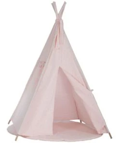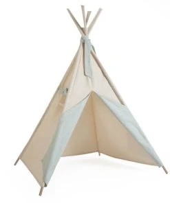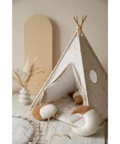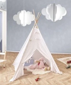 Tipi de jeu pour enfant à installer dans la chambre pour laisser leur imagination déborder! Ce tipi déco devient leur petit refuge où ils aiment venir lire, jouer, s’installer… Et pourquoi ne pas disposer des coussins déco à l’intérieur pour créer un espace cosy?