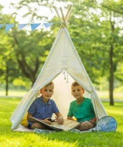 Grande cabane de pirate en tissu Win Green. Tissu 100% coton et structure en aluminium légère et solide. Livré avec un sac de rangement. Livré sans le tapis de sol. Dimensions : H : 110 cm x L : 110 cm x l : 74 cm. Dès 3 ans.