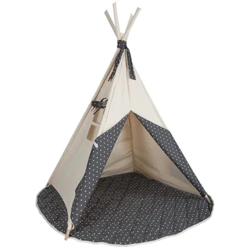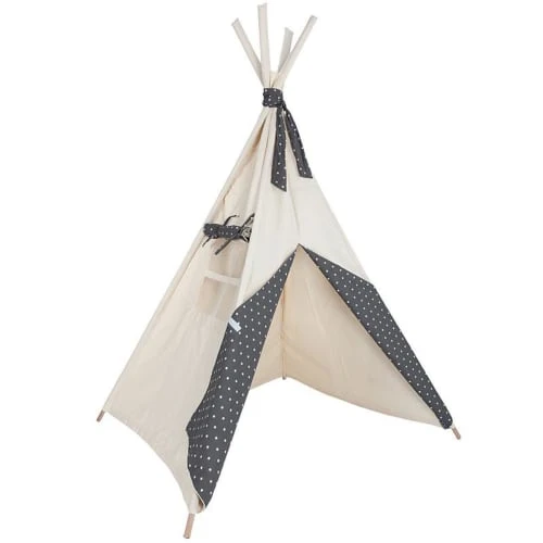Le tipi enfant beige STARS gris Wookids est la cachette parfaite pour votre petit aventurier ! Petit nid de convivialité et de partage, il permet à votre enfant de s’inventer de belles histoires. Léger, il peut se transporter facilement dans la chambre ou dans le salon : l’aventure est possible partout dans la maison ! INFORMATIONS TECHNIQUES : Âge recommandé : à partir de 3 ans Matériaux : 100% coton bio et bois de hêtre Couleur : beige et gris Également disponible dans d’autres couleurs Tipi avec 4 poteaux Dimensions : fermé 180 cm/ouvert Ø125 cm x 150 cm de haut Coton certifié Oeko Tex 100 Lavable en machine à 30°C Conçu et fabriqué en Espagne